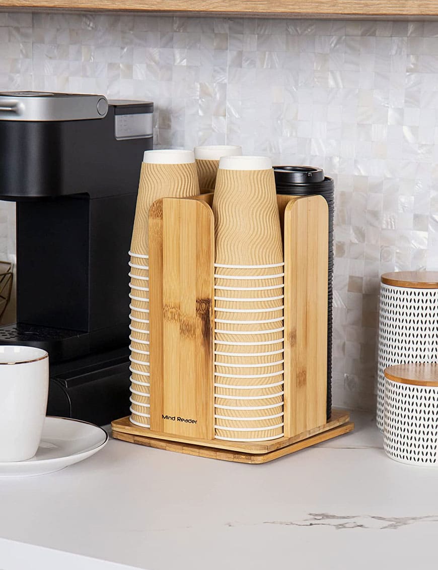 Keep your coffee cups organized and within reach with the Coffee Cup Stand Wooden.
