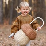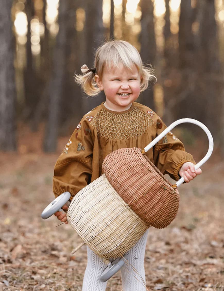 The Wicker Wooden Dolls Toy combines the charm of wicker craftsmanship with the durability of wood.